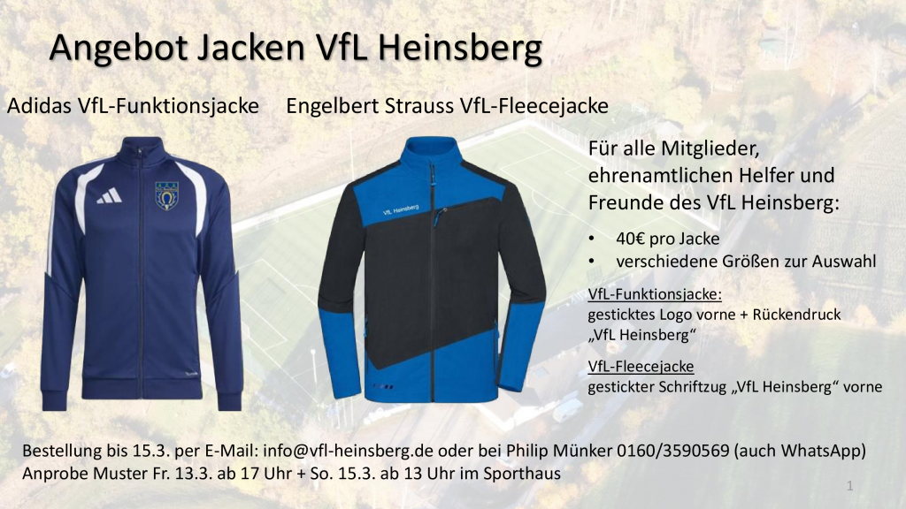 Ab sofort können VfL-Jacken folgende VfL-Jacken bestellt werden. Hier gibt´s alle Infos.